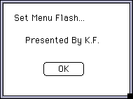 Macintoshはメニューバーから、メニュー項目を選択すると、選択されたことがわかるようにメニュー項目が点滅します。コントロールパネルの一般設定で、この点滅回数を設定する事ができます。コンパネと同等の機能だけでなく、任意に点滅回数を設定できるようにしてみます。