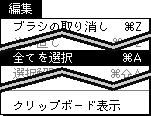 ![]() | 編集メニューから「全てを選択」を選びます。 |